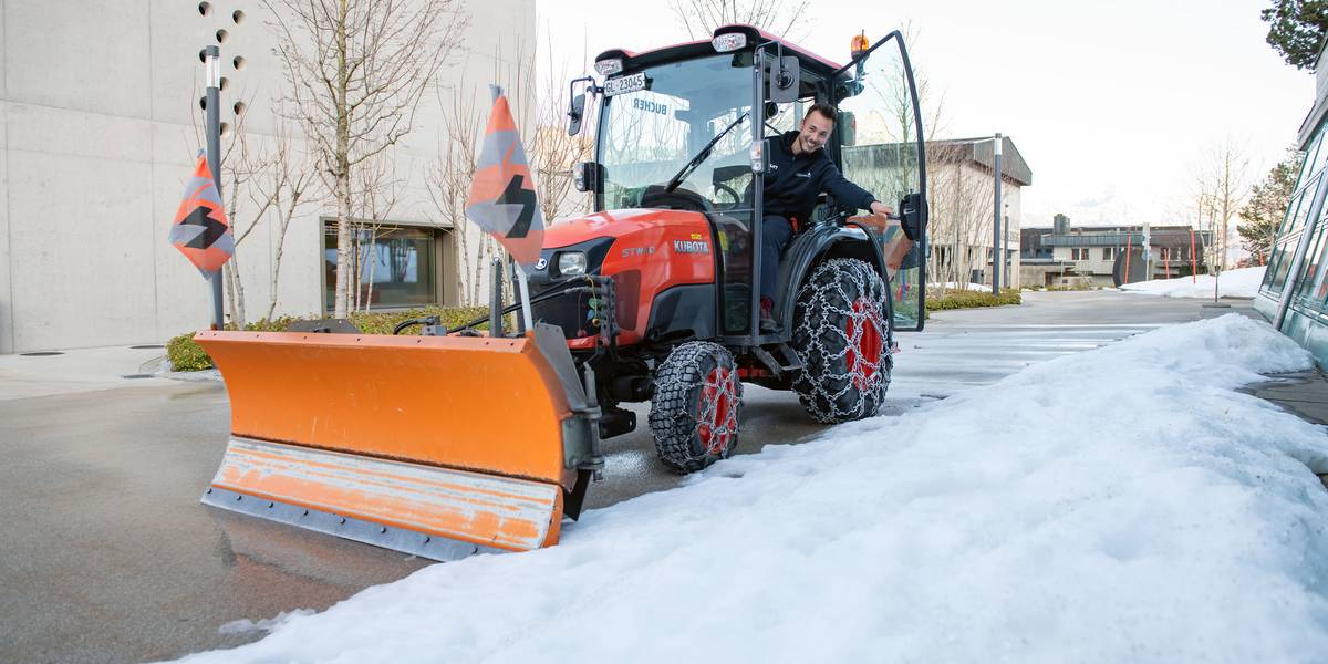 Raus an die frische Luft: Du pflegst Grünflächen, Sportplätze und Wege – im Sommer wässern, im Herbst Laub entfernen und im Winter Schnee räumen.