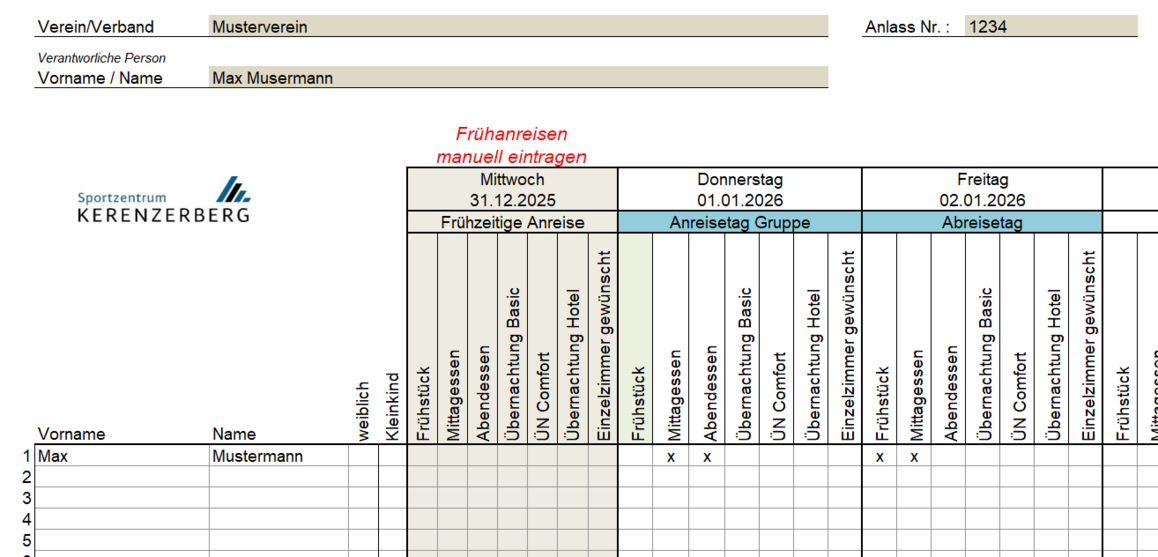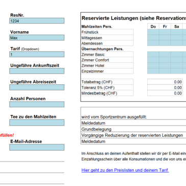 für Detailinfos die "Gästeliste" und die "Liste Sportzentrum" ausfüllen