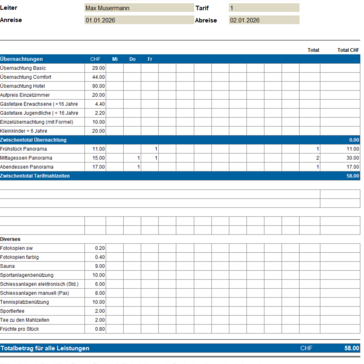 Tipp: mit unserer Gästeliste kannst du dir deine eigene Kostenzusammenstellung (Offerte) erstellen.