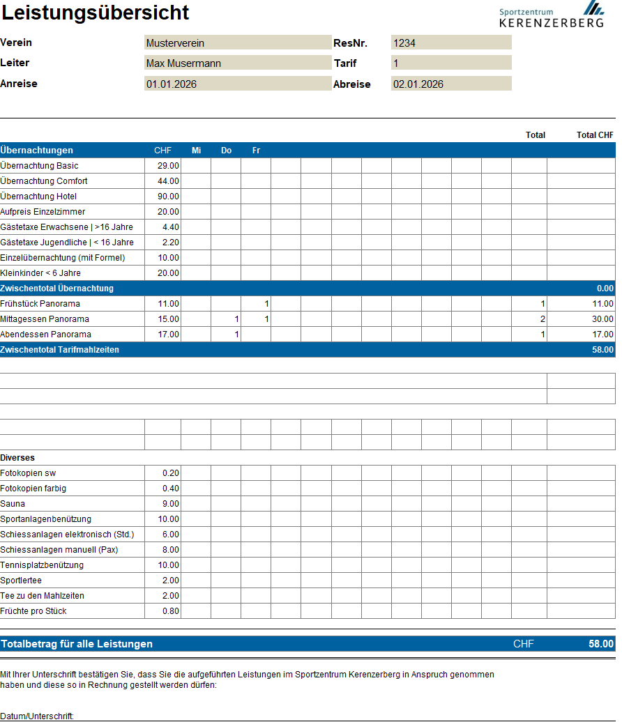 Statistische Erhebungen für den Kanton Zürich und touristische Meldungen für den Kanton Glarus zwingen uns, einige Angaben für alle Gäste vom Sportzentrum erheben.